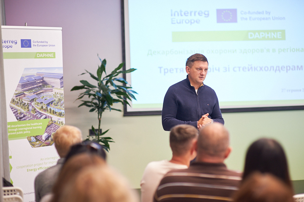 On August 27, 2025, the third meeting with stakeholders of the DAPHNE - Decarbonizing Healthcare in the EU Regions project, implemented under the Interreg Europe program, took place in Ivano-Frankivsk.