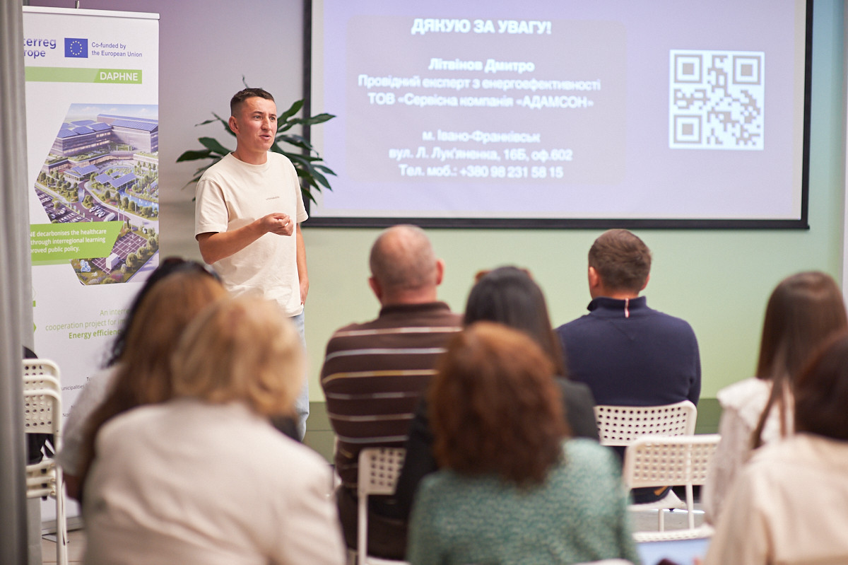 Ihor Popadyuk, Director of the Department of Investment Policy, Projects, International Relations, Tourism, and City Promotion of the Ivano-Frankivsk City Council, addressed the participants with a welcoming speech. He emphasized the importance of implementing innovative solutions in the field of energy efficiency in medical facilities and stressed that the DAPHNE project opens up new opportunities for partnership and development.