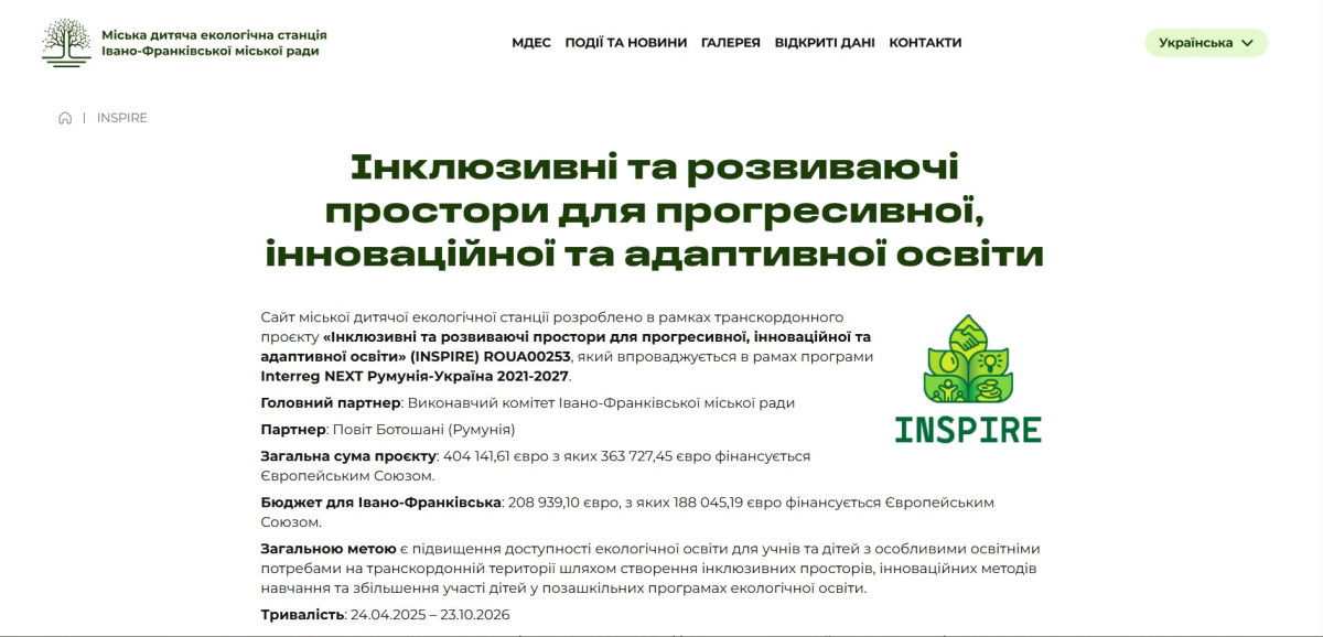 Створено новий сучасний сайт Міської дитячої екологічної станції Івано-Франківської міської ради: https://mdes.com.ua/inspire