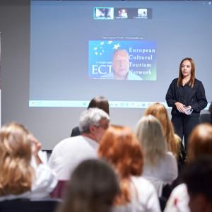 Зустріч розпочав директор Департаменту інвестиційної політики, проєктів, міжнародних зв’язків, туризму та промоцій міста Ігор Попадюк, наголосивши на важливості об’єднання зусиль для розвитку туристичної галузі громади та впровадження сучасних практик управління дестинаціями. Представник Європейської мережі культурного туризму Манос Воугіукас привітав учасників та розповів про значення міжнародної співпраці у впровадженні концепції «розумного туризму», що поєднує доступність, сталість і діджиталізацію.