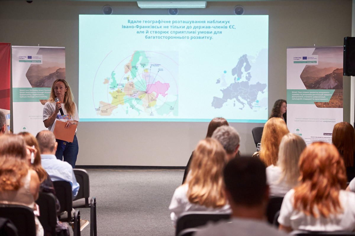 Начальниця управління проєктної діяльності Департаменту Лідія Черевко презентувала цілі та завдання проєкту SmartTour, акцентуючи на тому, як він допоможе місту інтегрувати європейські стандарти в управління туристичною сферою. Своєю чергою, начальниця управління міжнародних зв’язків, туризму та промоцій Уляна Басараб представила стан туристичної галузі Івано-Франківська, окреслила ключові виклики та можливості.