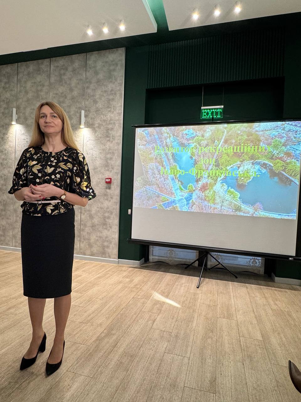 Про практичні кроки Івано-Франківська щодо розвитку блакитно-зеленої інфраструктури розповіла Руслана Василюк, директорка КП «Центр розвитку міста та рекреації» та представила підходи міста до догляду за рекреаційними зонами, підсилення природних екосистем та інструменти, які допомагають формувати комфортне та екологічно стійке міське середовище.